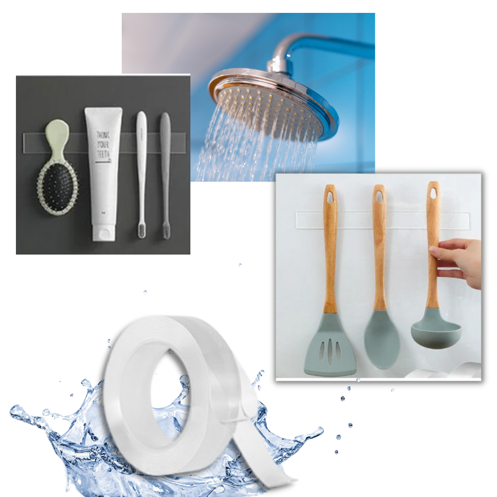 Use the Magic Tape in the bathroom, the kitchen, or your hallway. It is waterproof and therefore not affected by humidity and water splashes. This makes it suitable for toiletries and decorative things in rooms where the humidity is high.